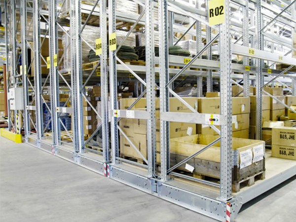 移動式貨架易控制,安全穩定。每排貨架有一個電機驅動,由裝置于貨架下的滾輪沿鋪設于地面上的軌道移動。